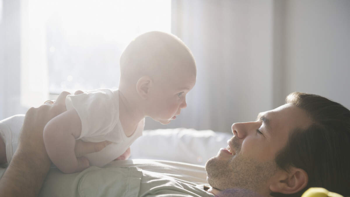 This dad rocked his child to sleep with his legs as he played a soothing tune lullaby on the guitar.